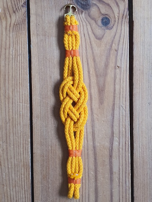 Nautically themed rope bracelet for men utilizing the ancient ‘carricks bend’ with anchor clasp. This one is in orange. Being in a bright cheerful colour makes this one quite popular. See other listings for more colours. If you’d like to match different colours together, like I’ve done with the blue and black lines in the gallery, then let me know in the ‘special instructions’.